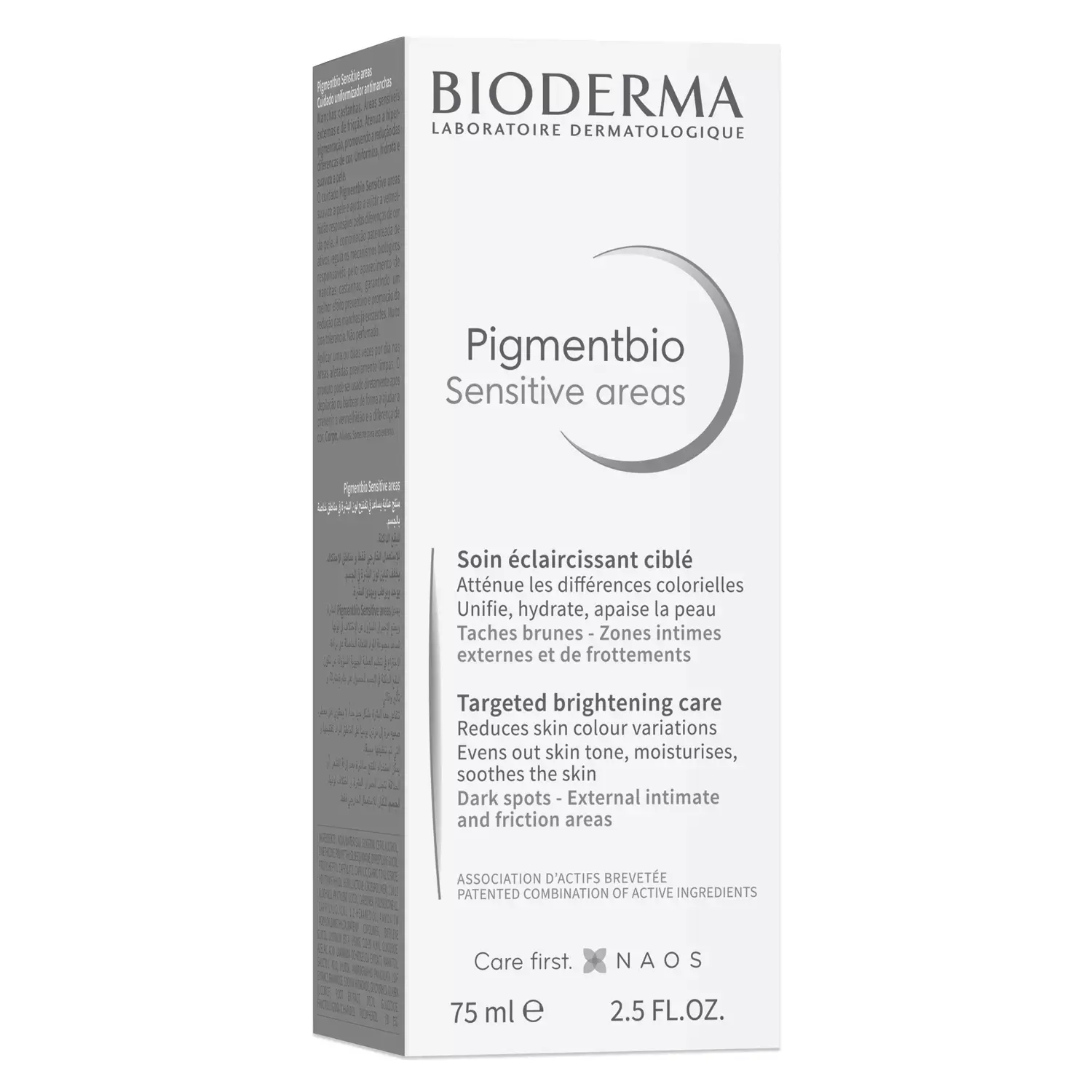 Средство косметическое для чувствительных участков тела, склонных к гиперпигментации (колени, локти, шея, подмышечные впадины, бедра, зона бикини). Крем осветляет гиперпигментацию, вызванную трением от одежды, после эпиляции или в случае, если есть предрасположенность кожи к появлению гиперпигментации. Эффективно воздействует на гиперпигментацию и хорошо переносится кожей, что позволяет применять его на самых деликатных участках тела. Успокаивает кожу и помогает предотвратить покраснение, вызывающее различия в цвете кожи. Запатентованная комбинация активных ингредиентов регулирует биологические механизмы, которые вызывают образование пигментных пятен и оказывает осветляющее действие.