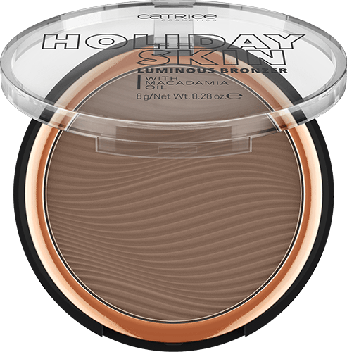 Продлить летний загар, мягко подчеркнуть контуры лица или вернуть здоровый оттенок «уставшей» коже? Какая бы задача перед вами ни стояла, бронзирующая пудра Holiday Skin поможет решить её с блеском — вернее, с деликатным сиянием. Шелковистая водостойкая пудра придает лицу мягкий оттенок загара и ненавязчивое естественное свечение, а масло макадамии в составе дополнительно питает кожу. Бронзер доступен в двух оттенках.