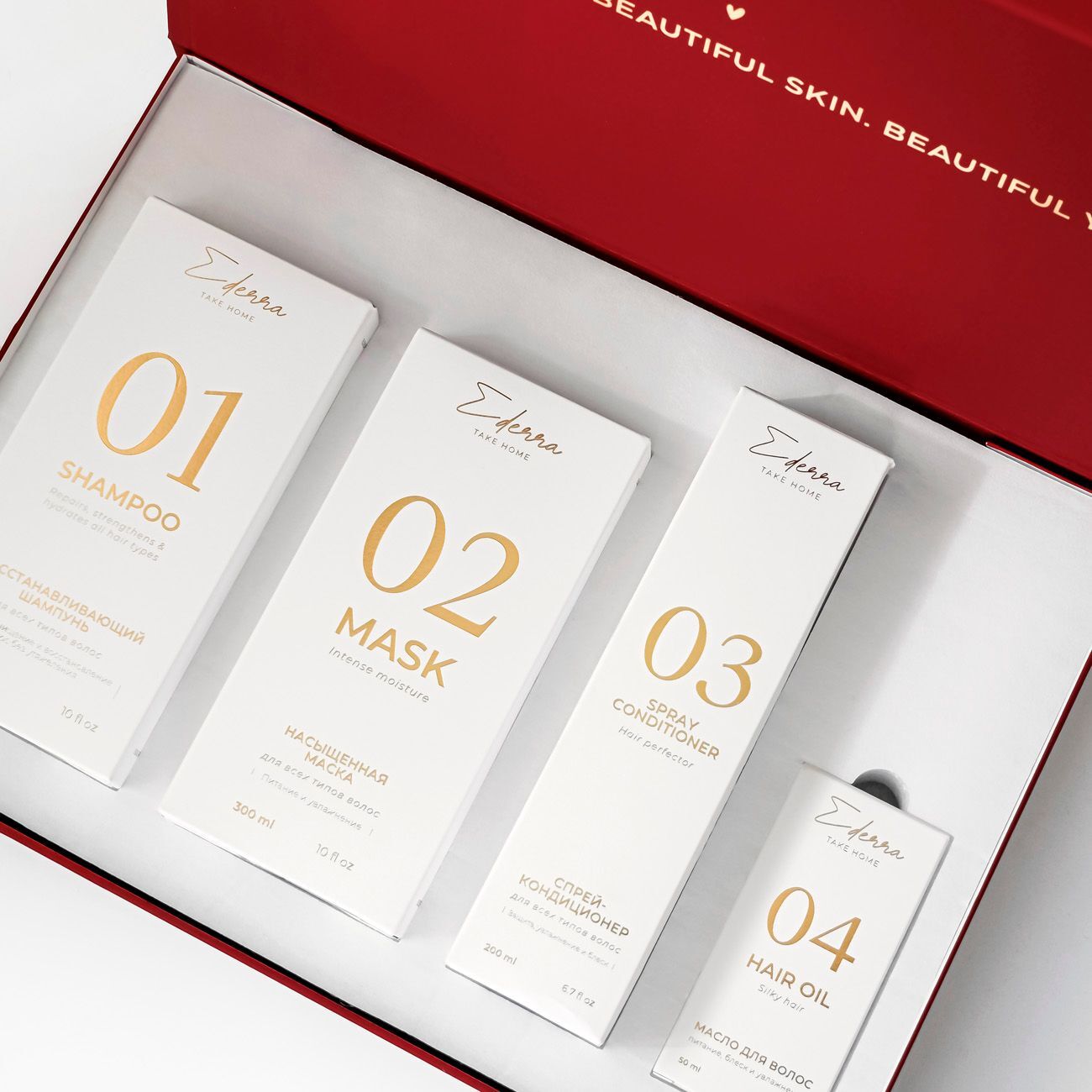 Подарочный набор Ederra в лимитированном боксе — это полноценный ритуал ухода за волосами, созданный для восстановления, питания и защиты.