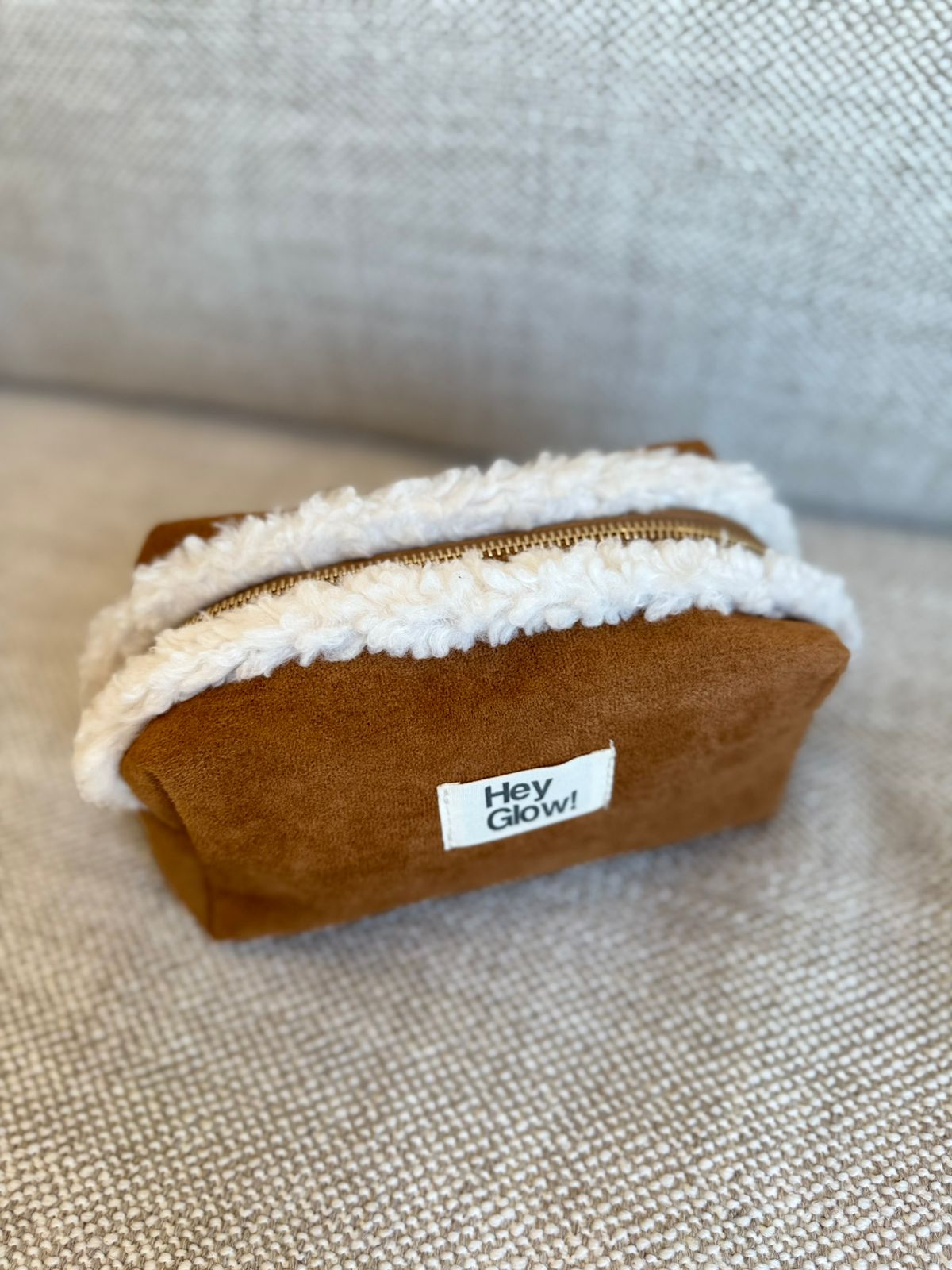 HEY GLOW Меховая косметичка белый, коричневый (средний)