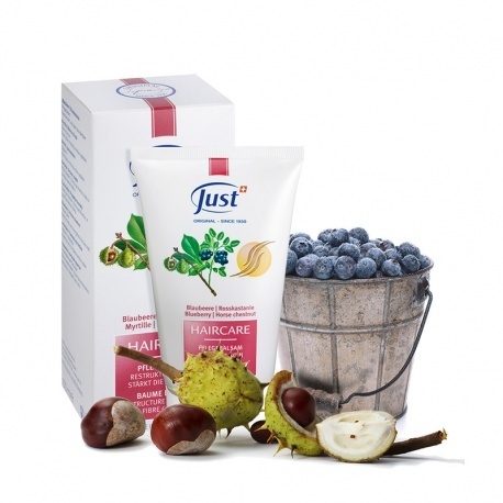масло косточек черники, экстракт каштана конского, в которых содержится оптимальное количество жирных кислот для ухода за волосами, кукурузный крахмал, пантенол, фитантриол, биотин, эфирные масла фенхеля и мяты перечной, с добавлением кондиционирующего средства.
